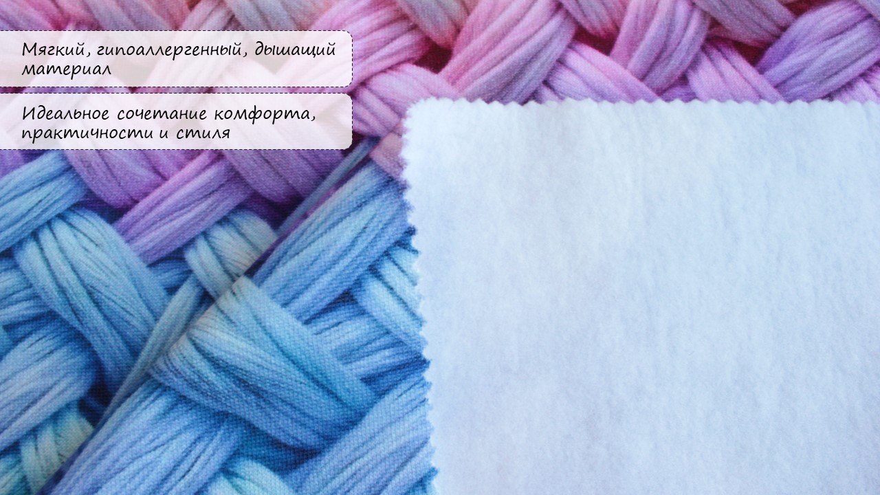 - Ширина ткани: 180 см — щедрое полотно для пошива крупных изделий, пледов, толстовок и интерьерного текстиля