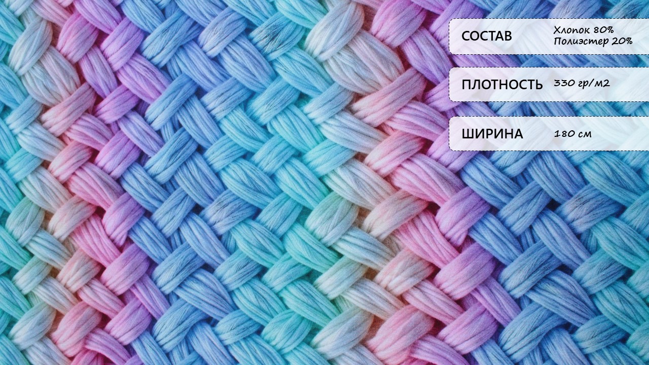 Футер 3х нитка начес принт «Плетение» мультиколор — геометрическая гармония (хлопок 80%, полиэстер 20%, ширина 180 см)